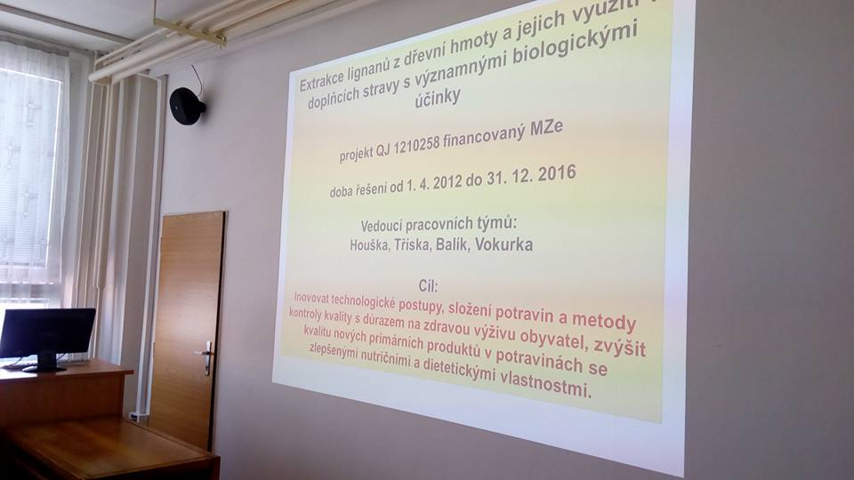 Ve středu 18.1.2017 se v budově VUPP v Praze 10 - Hostivaři konalo projednání závěrečné zprávy projektu NAZV-MZe QJ1210258 s názvem Extrakce lignanů z dřevní hmoty a jejich využití v doplňcích stravy s významnými biologickými účinky, odpovědný řešitel: Ing. Milan Houška, CSc., oponenti Prof. Ing. Pavel Kalač, CSc Jihočeská univerzita České Budějovice a Ing. Eva Šimsová, firma AROCO spol. s r.o., Praha.