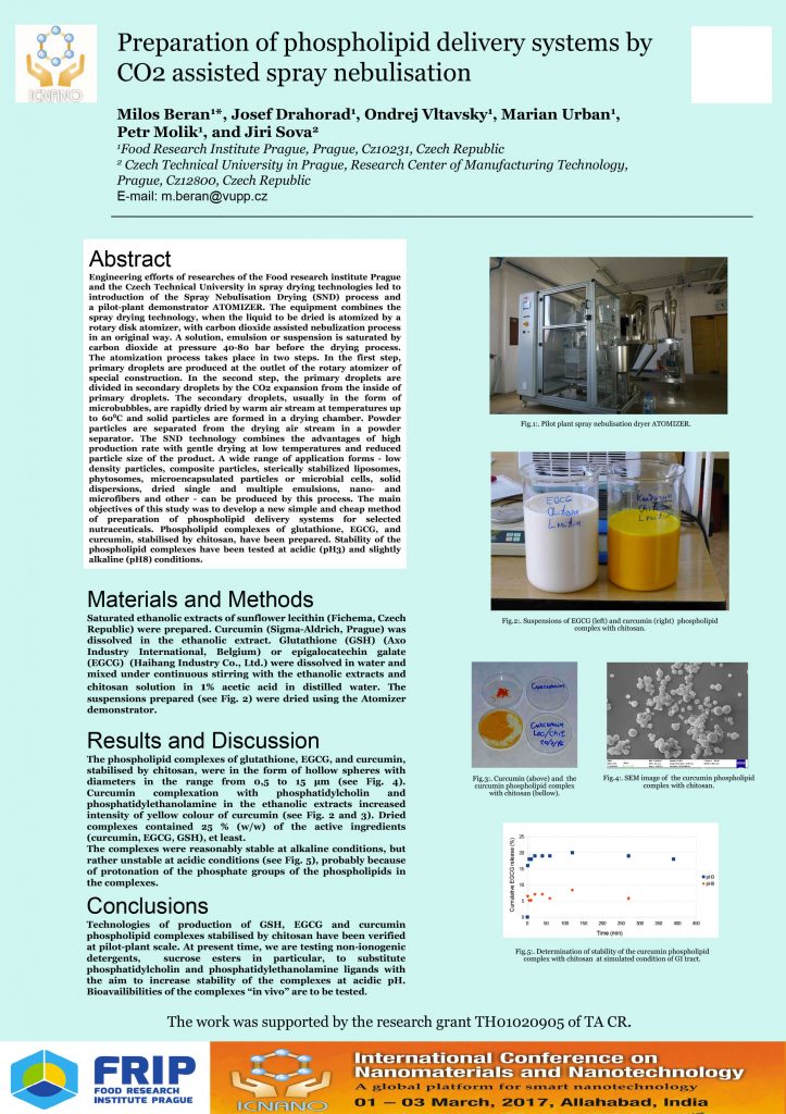 Ing. Miloš Beran z oddělení potravinářských technologií, biotechnologií a inženýrství přivezl z Indie ocenění za nejlepší posterovou prezentaci v rámci konference ICNANO2017. http://www.vbripress.com/icnano/