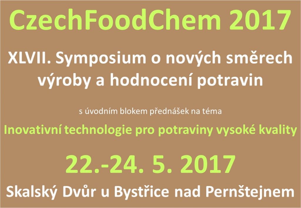 XLVII. Symposium o nových směrech výroby a hodnocení potravin se bude konat 22.-24.5.2017 v hotelu Skalský dvůr u Bystřice nad Pernštejnem. Program letošního symposia o nových směrech výroby a hodnocení potravin bude zahrnovat úvodní blok přednášek na téma "Inovativní technologie pro potraviny vysoké kvality", je uspořádáno formou přednášek a posterů s vydáním sborníku příspěvků v elektronické formě s ISSN a…