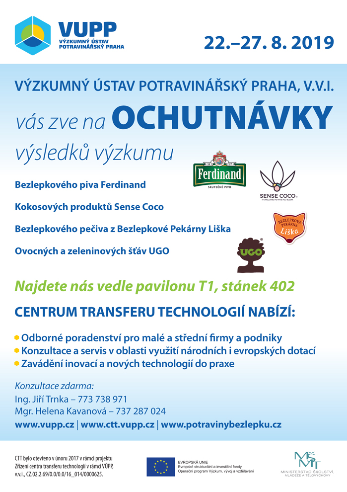 Výzkumný ústav potravinářský Praha, v.v.i. (VÚPP) se i v letošním roce zúčastnil populárního zemědělského veletrhu Země živitelka v Českých Budějovicích (23.-28. 8. 2018). Kolegové z Centra transferu technologií (CTT) na stánku č. 402 v blízkosti pavilonu T1 představili nový video spot o VÚPP a jeho CTT. V průběhu veletrhu konzultovali se zástupci malých a středních firem možnost spolupráce s VÚPP,…