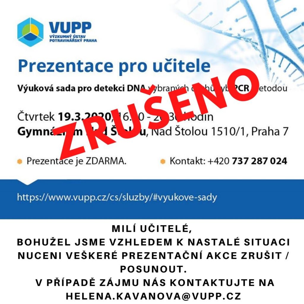 Milí učitelé, vzhledem k nastalé situaci je nutné všechny prezentační akce zrušit a posunout na pozdější termín. V případě zájmu o informace týkající se prezentace výukové sady, objednávek, ceny, termínu dodávky a dalších nás prosím kontaktujte na helena.kavanova@vupp.cz nebo mb.: 737287024. V případě, že budou všechna preventivní opatření zrušena a budeme moci vypsat nový termín, vás budeme ihned informovat. Všechny…